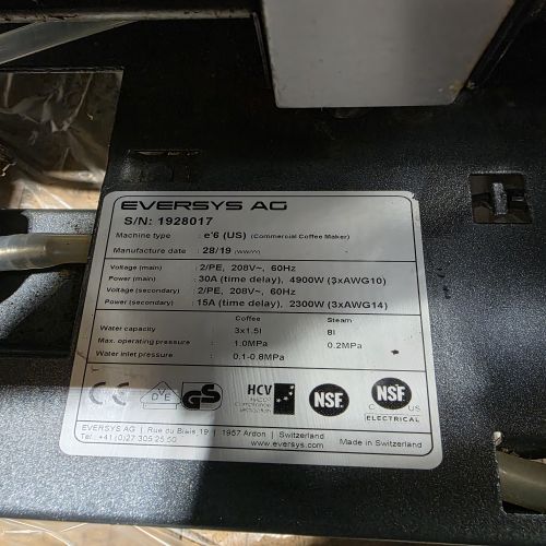 1 Eversys E'6 espresso machines for sale