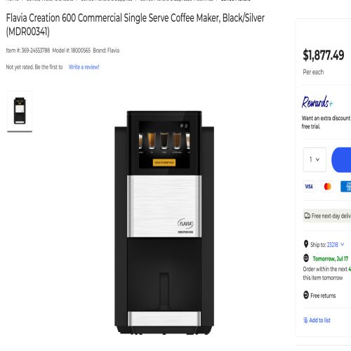 1 Flavia Creation C600 Single-Serve. Model No. LAV18000565 modular brewing systems for sale